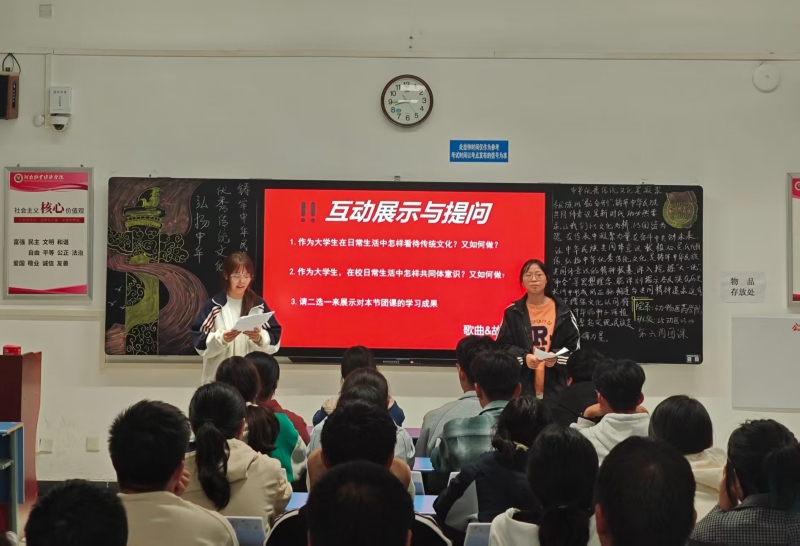 团课伊始,团支书以“中华文化的根与魂”为切入点,带领同学们回溯中华优秀传统文化源远流长的发展脉络。从诸子百家蕴含的哲学智慧到唐诗宋词展现的人文情怀,从春节、端午等传统节日承载的民俗传承,到书法、剪纸等非遗技艺彰显的匠心坚守,全方位呈现出中华文化“博大精深”的特质。同学们在聆听中深刻感悟到,这跨越5000多年的文化积淀,是中华民族共同的历史记忆,更是滋养中华儿女精神世界的宝贵财富,为铸牢中华民族共同体意识筑牢了文化根基。
