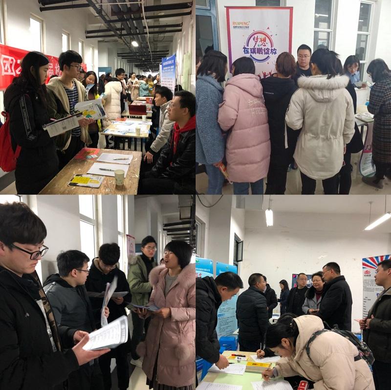 由于参与企业较多,会场主要分布在生工楼A座4楼各个教室和走廊。上午九点左右,现场人头攒动、招聘气氛热烈有序,面对职场新一代,许多用人单位“投其所好”,通过喷绘、海报、彩页、扫描二维码等方式充分展现其行业地位、培养机制、薪酬待遇,每家用人单位前都挤满了咨询的学生。参会用人单位向同学们发放了宣传材料,介绍了单位的概况、发展方向、岗位需求等情况。同学们向用人单位推介了自己的技能、爱好、特长、经历,提出了对岗位和职业的期望,表达了对单位发展、职业前景的关注。热烈的气氛还吸引了非毕业班学生踊跃参与,提前了解用人单位需求,感受就业市场氛围,为接下来的教学实习做了充足的准备。下午我院依据用人单位的要求在2号教学楼安排了宣讲和面试的场地,方便企业和同学们更深层次的交流和沟通。